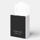 Modern Elegant Black and White Botanical Wedding Favour Box. This modern, elegant, wedding favour box features a black background on the front and back with modern calligraphy script, as well as a black ribbon. You can personalise the names of the bride and groom, the date of the wedding, the colour of the background and script, as well as the font itself. The back of the box features a beautiful romantic black and white bride and groom illustration with a minimalist botanical background which you may keep or remove as you see fit. You may also change the colour of the ribbon. Designed as part of the Modern Elegant Black and White Botanical Wedding collection.