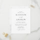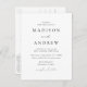 Minimalist, modern wedding invitation postcard featuring your wedding details in black lettering with calligraphy script accents. The white background can be changed to a colour of your choice. Personalise the back of the chic wedding invitation postcard with your return address, wedding website, images, etc. Designed to coordinate with our Modern Elegance wedding collection.