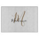 Modern Elegant Black Gold Monogram Script Name Cutting Board. Personalise this trendy chic black, white, and gold monogrammed cutting board with your initial and name in classic script typography. Perfect home decor gift or kitchen decor gift.