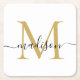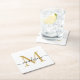 Modern Elegant Black Gold Monogram Script Name Square Paper Coaster