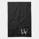 Modern Elegant Black Grey Monogram Name Script Tea Towel