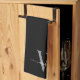 Girly Modern Elegant Black and Grey Monogram Initial Name Signature Script Custom Personalised Kitchen Towel. This design featuring your first name in a pretty hand lettered style swash tail font typography (or calligraphy) with monogram initial in grey and white on black. These are easy to customise it. Great stylish feminine housewarming gift, also for birthday, wedding, mother’s day, bridal shower and It’s for the girl who loves unique clean minimalist things.