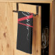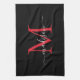 Modern Elegant Black Red Burgundy Monogram Script Tea Towel