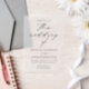 Set the tone for your special day with our Modern Elegant Script vellum wedding invitations. This timeless design showcases your wedding details in chic black lettering, with “the wedding of” highlighted in graceful calligraphy script on a sheer vellum background. These invitations are perfect for any season and blend classic elegance with a contemporary aesthetic, making them ideal for couples seeking a refined and modern touch. Personalise your invitations with your names, wedding date, venue, and other essential details to create a sophisticated announcement that beautifully reflects your love story.