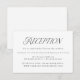 Elegant wedding reception card featuring "Reception" displayed in a black, modern typography style: a combination of calligraphy and serif lettering. Personalise the chic black and white reception card with your wedding reception details and wedding website. This design is perfect for modern weddings!