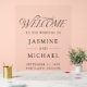 Elegant wedding welcome acrylic sign featuring "Welcome" displayed in a black modern typography style: a combination of calligraphy and serif lettering. Personalise the acrylic wedding sign with your names, wedding date, and location. This design is the perfect sign to use at your wedding reception, engagement party, couples shower, rehearsal dinner, or other special event.