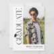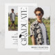 Celebrate your graduate in timeless, elegant style with this modern black and white graduation invitation. Set against a chic white background, the design features trendy serif “GRADUATE” typography running vertically down the side, creating a refined focal point. A stylish graduation cap icon sits above the “R,” while the flowing tail of the letter transforms into a sleek tassel—leading the eye to a standout photo of the graduate.