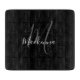 Modern Elegant Black White Monogram Script Name Cutting Board