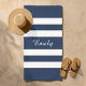 Personalized Modern Elegant Blue And White Stripes Pattern Name Beach Towel.