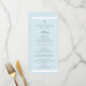 The classic elegant baptism menu card is a modern, clean featuring pastel blue stripes and a minimal cross with editable grey text.