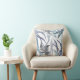 Modern Elegant Blue Fern Leaves Abstract Cushion