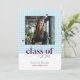 Modern Elegant Blue Graduation Cap Pattern Photo Invitation