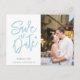 Modern Elegant Blue Photo Save the Date Postcard