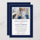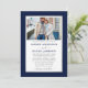 Modern Elegant Minimalist Photo Navy Blue and White Wedding Invitation. Silver Frame. Silver Grey Script.