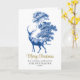 Merry Christmas holiday card, with brushscript text and classical French toile de jouy illustration of a deer in the countryside, very elegant vintage design in modern style, easily personalised, with customisable text on the front, inside and back of the card.