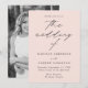 Minimalist, modern wedding invitation featuring your wedding details in simple black lettering with "the wedding of" in an elegant calligraphy script with a blush background. The invite reverses to display your vertical engagement photo. Designed to coordinate with our Modern Elegance wedding collection.