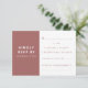 This RSVP card or response cards complements the wedding invitation's modern and minimalist design, featuring a terrocotta pink or dusty rose colour scheme with clean typography. It provides a stylish and straightforward way for guests to confirm their attendance. Personalise it with your response deadline, dietery requirments and any additional requests. This chic RSVP card is ideal for couples who loves a refined, elegant look that aligns seamlessly with the tone of their special day.If you need any help customising this product, please contact me using the message button below and I'll be happy to help.