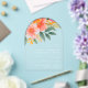 Modern elegant wedding invitation featuring bright pink orange watercolor floral accents.
