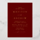 Minimalist, modern wedding invitation featuring your names and wedding details in gold foil lettering with calligraphy script accents. The burgundy background can be changed to a colour of your choice. Designed to coordinate with our Modern Elegance wedding collection.