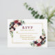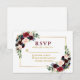 Modern Elegant Burgundy Blue Floral Wedding Gold RSVP Card