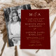 Celebrate your wedding in style with this minimalist, modern invitation featuring your monogram initials and wedding details showcased in stunning gold foil lettering. Elegant calligraphy script accents add a refined, romantic touch. The rich burgundy background can be personalised with any colour of your choice to perfectly match your wedding palette. Plus, the invitation reverses to display your vertical engagement photo, creating a beautiful keepsake for your guests. Customise yours today for a chic and memorable wedding invite!