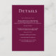 Modern Elegant Burgundy Wedding Details Enclosure Card