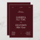 Make a bold and timeless statement with this elegant maroon wedding invitation. Designed with a deep wine-red background and refined serif paired with graceful script typography, this template is perfect for formal weddings, evening receptions, or vineyard celebrations. The rich burgundy and ivory colour palette creates a sophisticated atmosphere, while the clean, balanced layout ensures your details stand out. Fully customisable — personalise with your names, wedding date, and venue details. Coordinates with the full “Sabrina” wedding stationery suite for a cohesive and elevated event look.