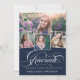 A modern graduation invitation featuring the word “graduate” on the front in stylish script calligraphy, plus 4 of your favorite senior photos. Add your own personal celebration details to the back. This is the navy blue version.