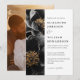 This elegant black and gold floral wedding invitation can be personalised with your information in modern typography and a special photo on the reverse. Designed by Thisisnotme©
