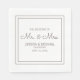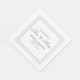 Modern, chic, and elegant white wedding reception paper napkins with the bride's and groom's names and their wedding date.