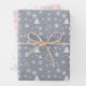 An elegant modern minimal pink, white and grey Christmas tree patterned wrapping paper set for the holiday season.