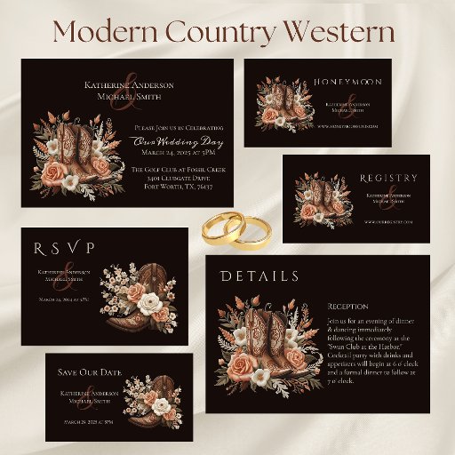 Elevate your wedding reception ambiance with these Modern Country Western Place Cards. These cards seamlessly integrate into your wedding theme, perfectly blending timeless elegance and personalisation. Featuring a country contemporary design, these place cards elegantly direct your guests to their seats, adding a touch of sophistication to your tablescape. Make your reception truly memorable and inviting with these meticulously crafted, personalised place cards. Explore our variety of meal icon choices to ensure a seamless dining experience for your cherished guests. Let these meal icons be the secret ingredient for a smooth and delightful dining affair.