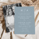 Modern Elegant Dusty Blue Monogram Photo Wedding Invitation