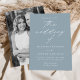 Modern Elegant Dusty Blue Photo Wedding Invitation