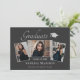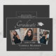 Beautiful 3 photo 7"x5", graduation announcement cards. Featuring modern text with elegant calligraphy script in silver colour. Your photos are thinly edged with silver grey trim for that extra "Pop". The design is complimented with a stylish dark platinum grey background. The back of the card offers a personalised announcement text space for that special graduate. To see more items like this, visit my store here at "www.Zazzle.com/LakeViewCardCo". Thanks