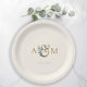 Modern, elegant eucalyptus ampersand wedding paper plate