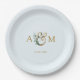 Modern, elegant eucalyptus ampersand wedding paper plate