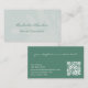 Personalize this stylish eucalyptus green toned business card with your name and contact information. Customize the modern white script with your own words for the perfect contact card. On the front is space for you name, your business, the services you offer. On the back you can add your tag line, or personal note. The simple clear script is ready for your number, email address, website address. You can add as much or little text as needed. You can add your QR code for a modern business card. The beautiful botanical design is trendy and elegant. This card would work well for any profession, like a beauty consultant, skin care specialist, a beautician, a designer, therapist, a hair stylist, or a life coach to name a few.