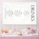 Set the tone for a sophisticated celebration with this modern fabric wedding bar menu banner in a timeless black and white colour scheme. Featuring clean typography and an elegant layout, this drinks menu banner is a stylish way to showcase your cocktail or beverage offerings. Printed on high-quality fabric, it's perfect for hanging behind the bar or other space at your reception. Fully customisable with your drink list.