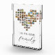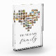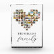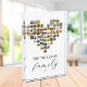 Create your own custom family photo collage acrylic block featuring 63 of your favourite pictures in a heart shaped photo grid style design. Personalise with family name in modern typography for a custom photo gift or home decor.