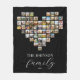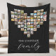 Create your own custom family photo collage blanket featuring 63 of your favourite pictures in a heart shaped photo grid style design. Personalise with family name in modern typography for a custom photo gift or home decor.