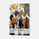Personalise your holiday christmas tree with a beautiful modern family 2 photo metal square ornament, featuring your family name and the year with your family photos on the front and back. This custom, unique design features an elegant calligraphy style font type in bronze colour over a chic white gradient complimenting your families photo. The perfect housewarming addition to your holiday décor.