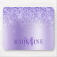 Modern Elegant Fashionable and Trendy Violet Purple Glitter Mouse Pad personalised with your Monogram Initial and Name.