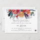 Red navy indigo bohemian flowers bouquets, small graduate hat and a round faux metallic gold copper monogrammed circle making a modern glam horizontal graduation celebration invitation with a trendy chic fully editable typography script. +++++++++++++ Easy to personalise with your details!