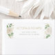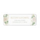 An elegant floral wedding return address labels featuring white watercolor peonies and roses with greenery and modern delicate handwritten calligraphy.