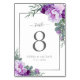 Modern Elegant Floral Purple & Silver Wedding Table Number