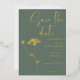 Modern elegant gold foil design . Simple modern handwritten typography in gold foil, stunning sage green background and adding to it subtle floral touch - sketch of Queen Anne's Lace. You can personalise the wording, font style, colour and size of this invitation card. Match items available in collection
