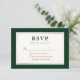 Modern Elegant Minimalist Forest Green and White Wedding RSVP card. Gold Frame.