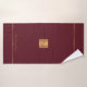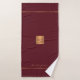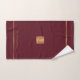 Trendy luxury exclusive looking monogrammed bath towel set featuring a faux gold copper metallic glitter square and lines over a stylish classy dark red wine burgundy background. + Personalise it with your name or family name and monogram name initial.