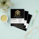 Modern handyman business flyer features gold tools in the shape of the house on a black background. Personalise with your name, title, services, contact details and qr code.